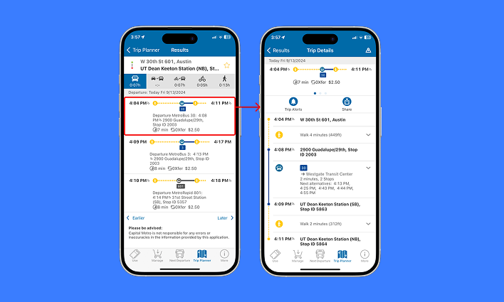 A usability study conducted on the app for CapMetro, Austin's public transportation service.