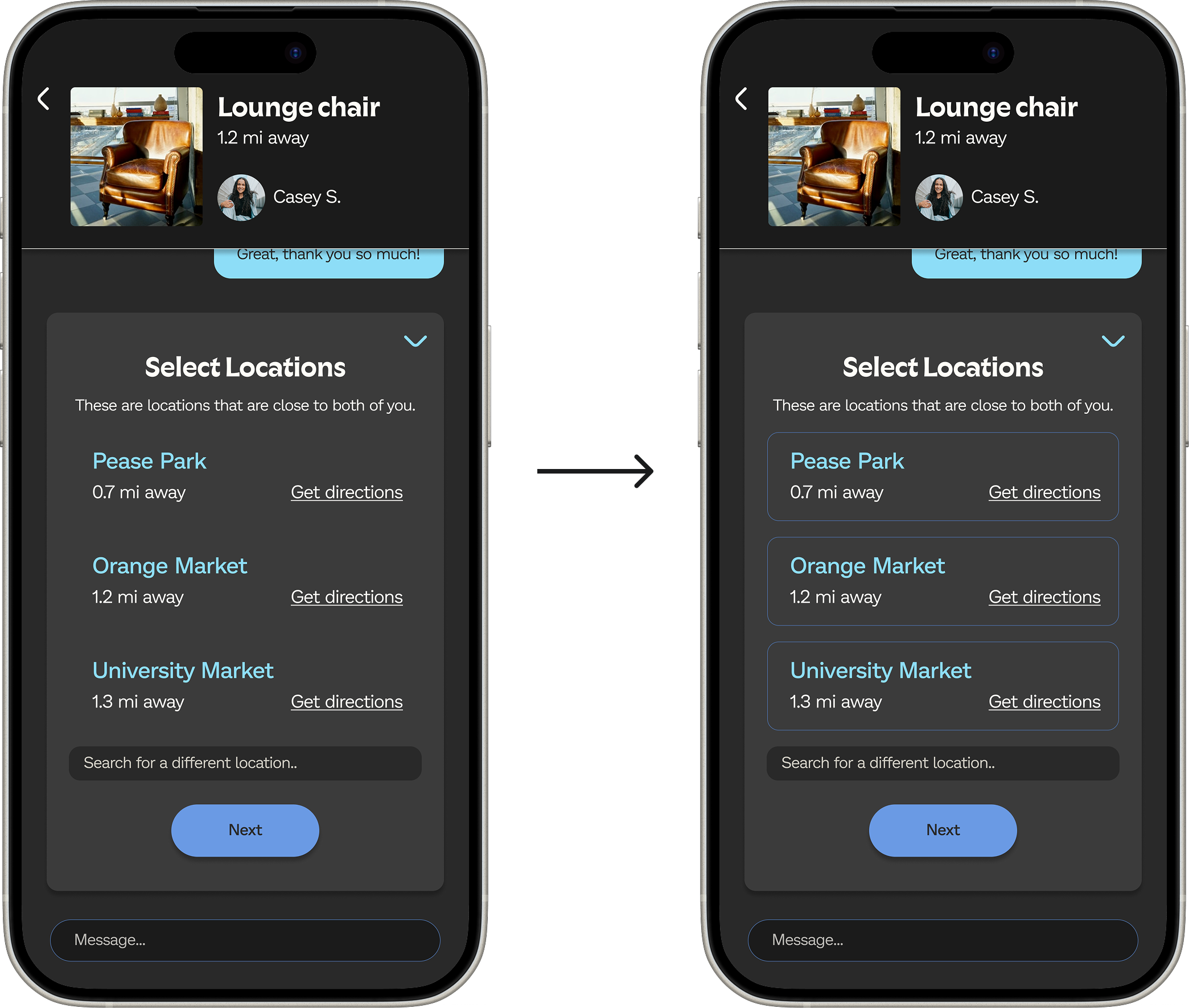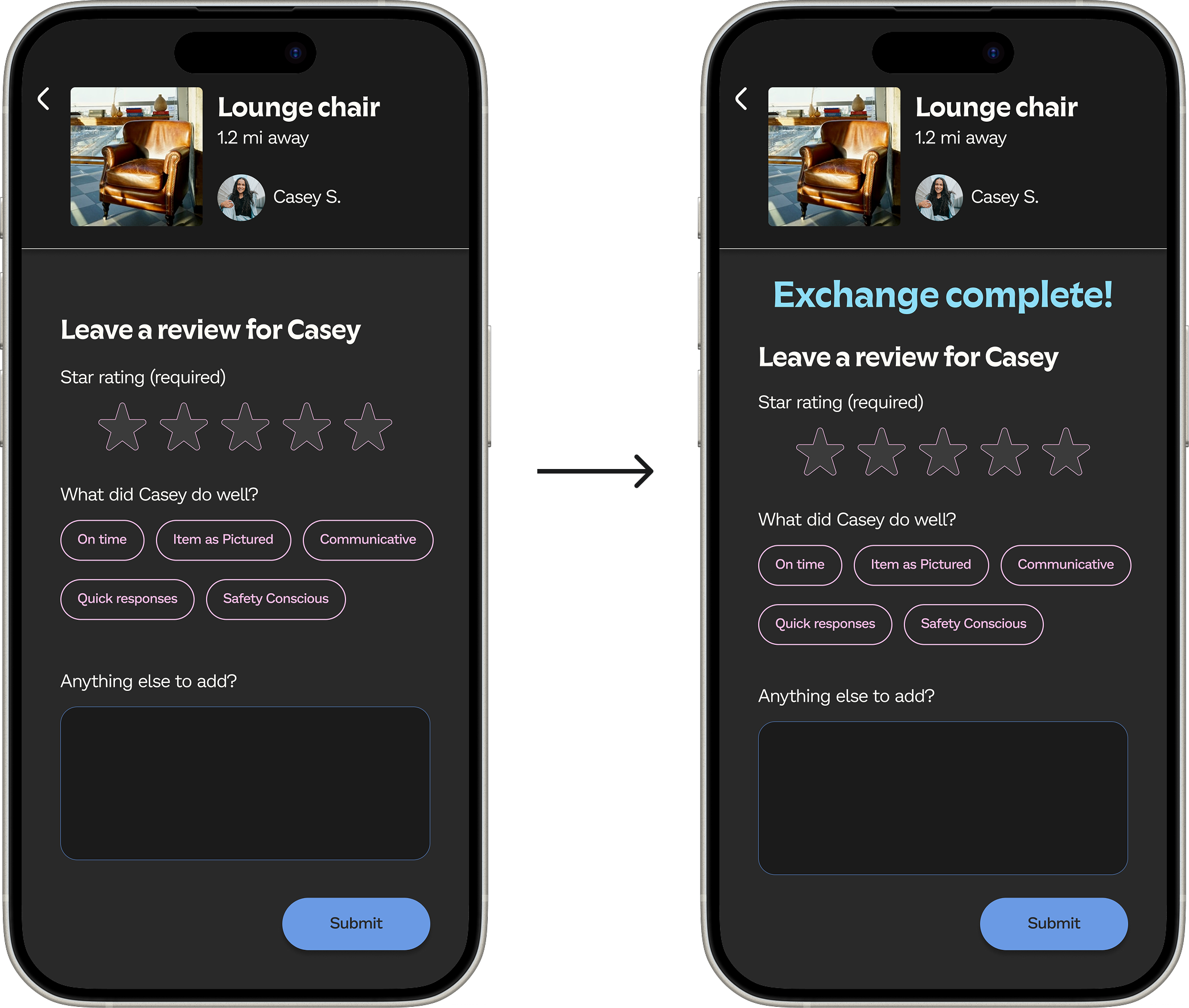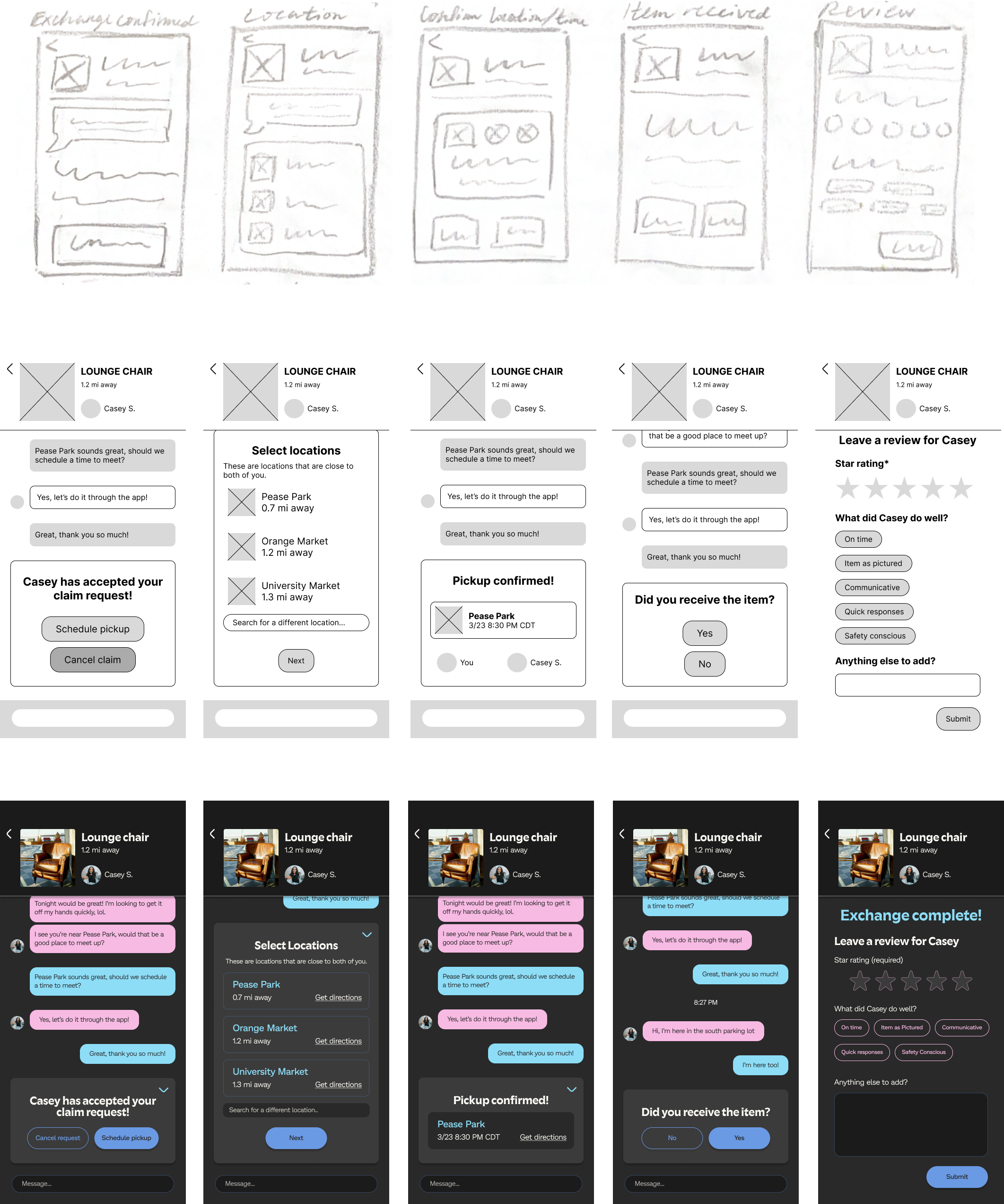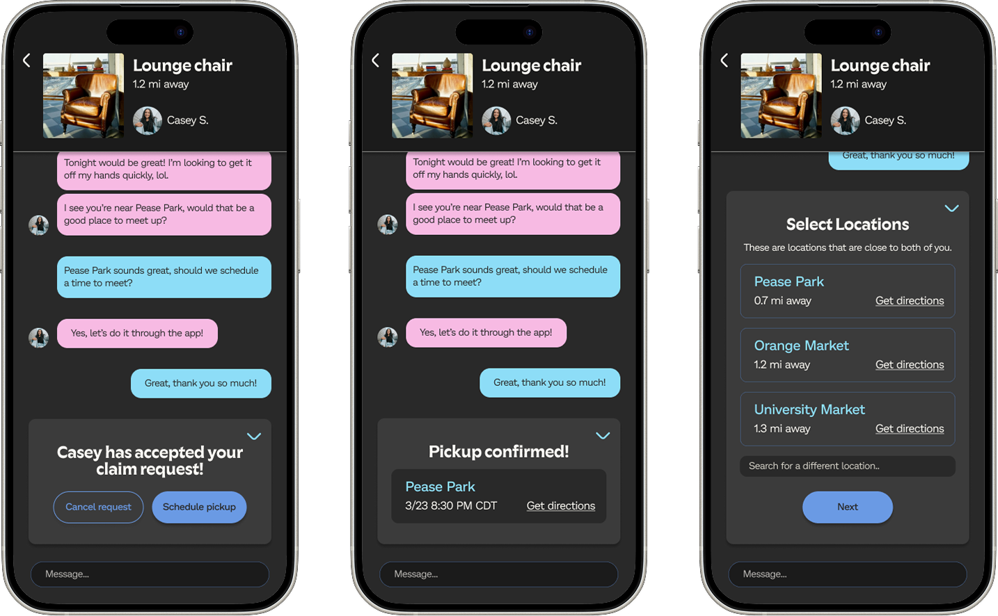 Users have the option to arrange item pickup through a step-by-step process to minimize the hassle of going back and forth.